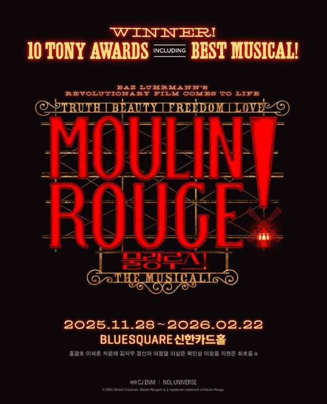 2025년 겨울 다시 돌아오는 뮤지컬 《물랑루즈!》는 음악적 완성도, 무대 스케일, 배우진의 역량을 모두 갖춘 대형 작품이다.
