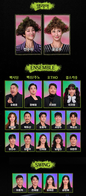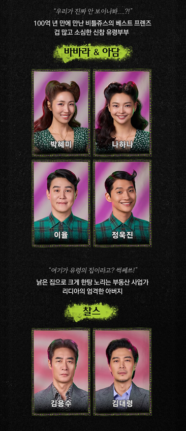 비틀쥬스는 캐릭터 중심 연출 비중이 매우 높아 배우의 해석에 따라 무드가 크게 달라진다. 2025~2026 시즌 주요 캐스팅은 다음과 같다.